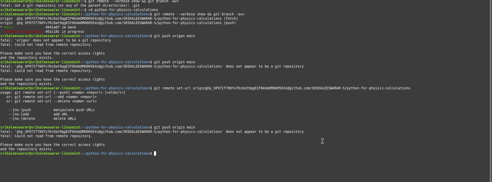 you added your token in the remote origin name.
