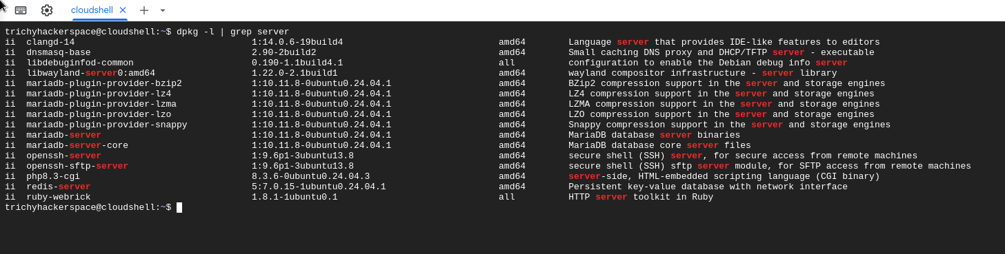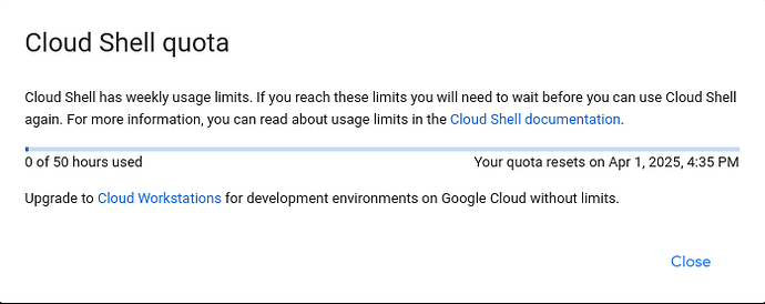 Google Cloud Shell (Debian-based VM with 5GB persistent storage).
