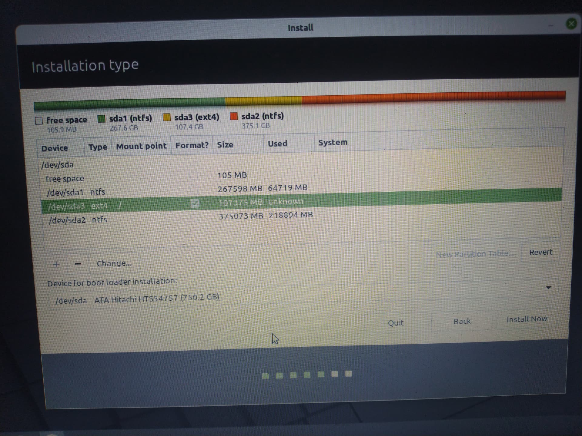 சரி, லினக்சை நிறுவ துவங்கவும். பார்டிஷன் தேர்வு செய்யும்போது திரையை பகிர்ந்து கூறவும்.