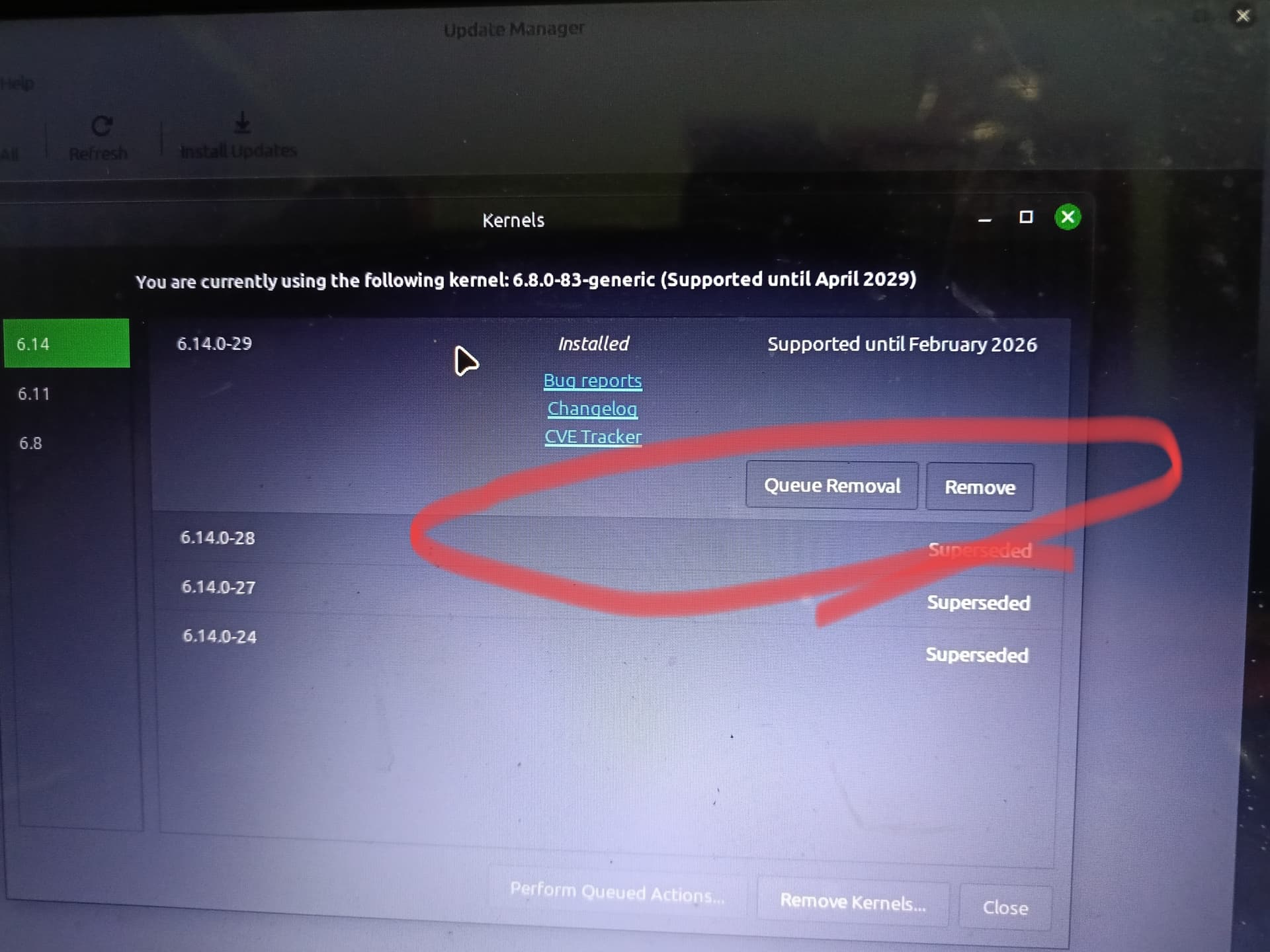 உங்கள் லினக்ஸ் மிண்ட் கணினியில் ஸ்டார்ட் மெனுவில் Update Manager என்று தட்டச்சு செய்து வரும் மென்பொருளில் View -> Linux Kernels என்ற தேர்வினை செய்து வரும் திரையை இங்கே பகிரவும். Warning என்று ஏதேனும் திரை வந்தால் continue கொடுத்து கர்ணர்கள் என்னென்ன உள்ளன என்று காட்டும் திரையை இங்கே பகிரவும்.