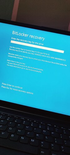பயாசில் தாங்கள் செய்த மாற்றங்களை நீக்கிவிட்டு பழையபடி வைக்கவும். அப்படி வைத்தாலும் இதே சிக்கல் வருகின்றது என்றால் மேலே உள்ள நிழற்படத்தில் உள்ள https://aka.ms/myrecoverykey எனும் தளத்திற்கு சென்று அங்கே கூறும் வழிமுறையை பின்பற்றவும். அங்கே தங்களுக்கு ஏதேனும் சிக்கல் வந்தால் Where to look for your BitLocker recovery key - Microsoft Support சென்று பார்க்கவும் அல்லது கூகிளில் தேடிப்பார்க்கவும்.